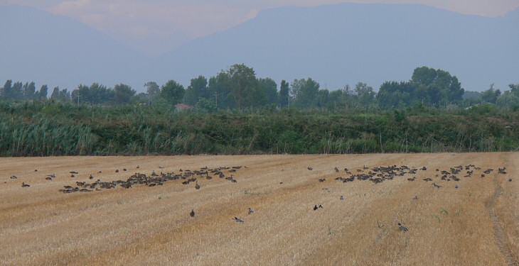 alcuni Colombacci) su stoppie di frumento nella campagna tra Ca'Noghera