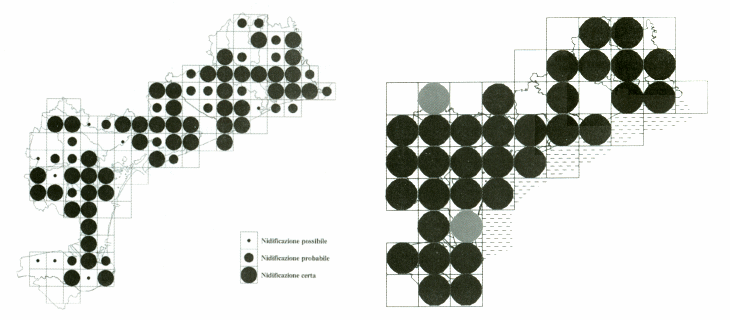 | Distribuzione in provincia di Venezia. A sinistra l'areale di
